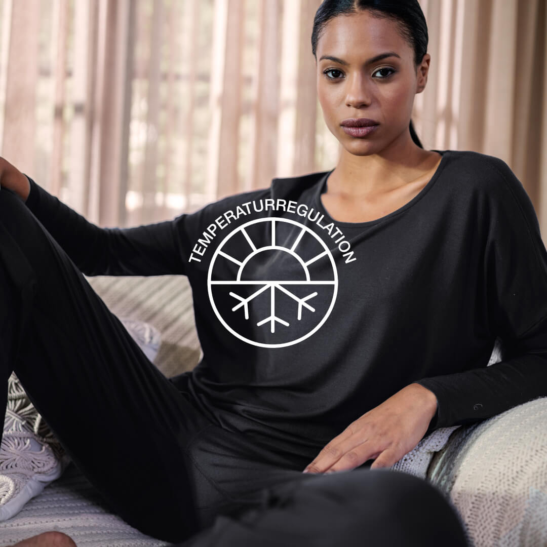 Der Schlüssel zu einem erholsamen Schlaf liegt darin, den Körper die ganze Nacht in der optimalen klimatischen Komfortzone zu halten. Wissenschaftliche Studien zeigen, dass unsere Balance-Schlafbekleidung die Hauttemperatur selbst bei steigenden Temperaturen um 1°C kühler hält als Baumwolle und zudem sechsmal atmungsaktiver ist. Überschüssige Körperwärme wird effektiv abgegeben, sodass du deine ideale Schlaftemperatur beibehalten kannst.