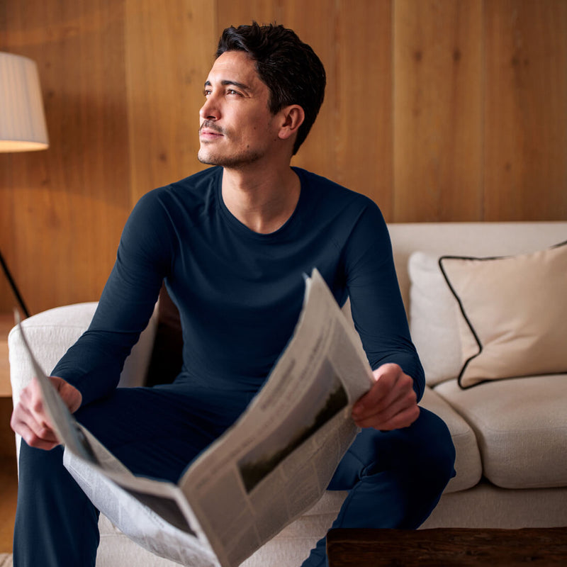 Um bestmöglich zu schlafen, müssen wir thermoneutral bleiben, das heisst, es darf uns weder zu warm noch zu kalt sein. Doch viele Menschen schwitzen nachts und können ihre ideale Schlaftemperatur nicht halten. Mit einer Kombination auf funktionalen Naturfasern und innovativen Stoffkonstruktionen hilft dir die feuchtigkeitsableitende Schlafbekleidung von Dagsmejan, in der klimatischen Komfortzone zu bleiben, damit dir nachts weder zu warm noch zu kalt wird. Für einen tieferen und längeren Schlaf, wissenschaftlich erwiesen.
